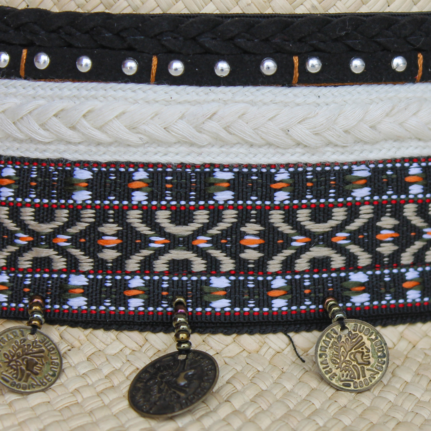 Sombrero Borsalino Color Natural con adorno Boho Travel Marroquí Coins