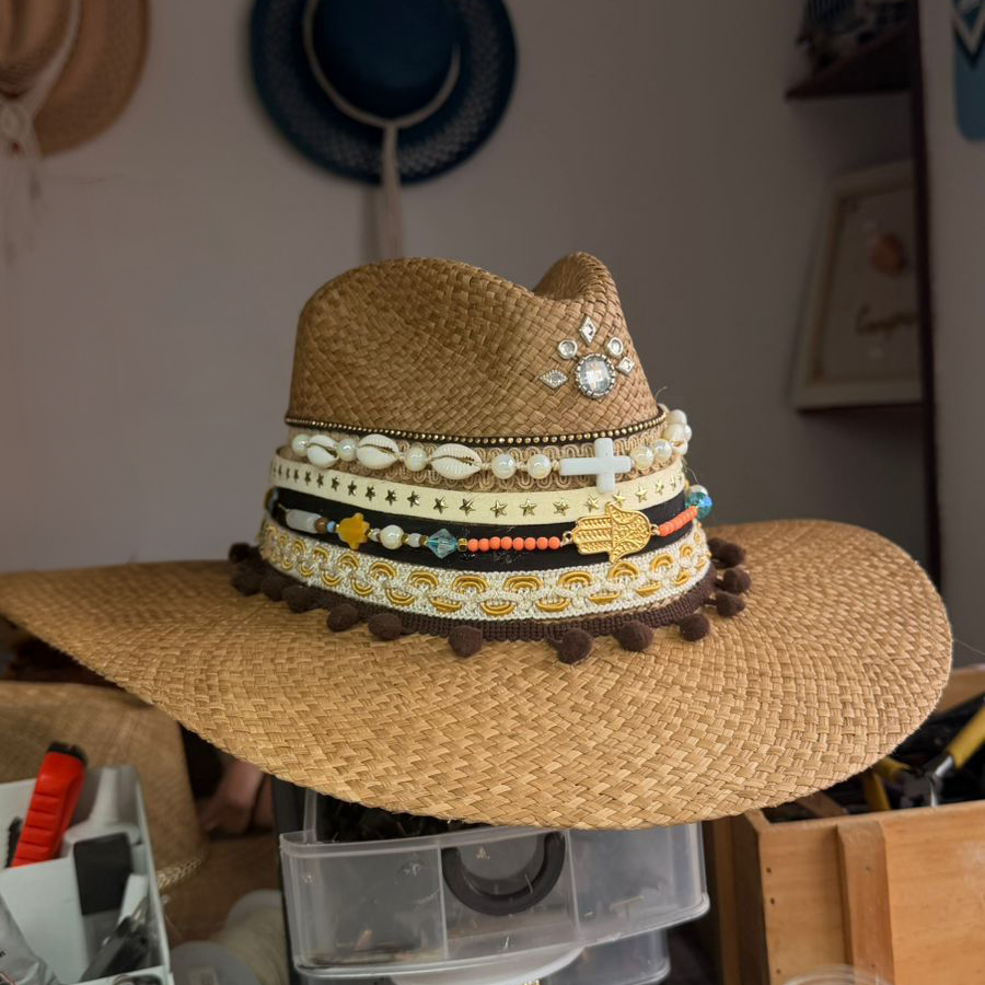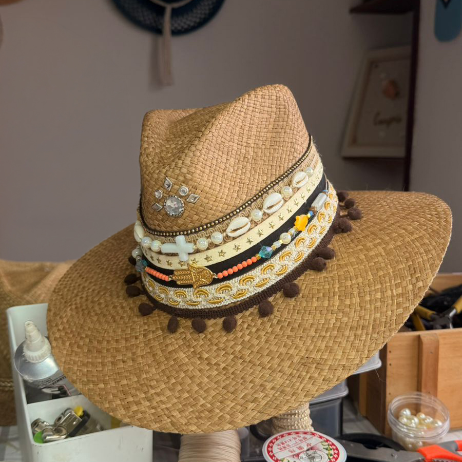 En el momento de su fabricación, se tratan conservar los colores y disposiciones de su decoración, las fibras naturales con que está tejido el sombrero pueden cambiar de tonalidad y algunos elementos decorativos pueden variar ya que no siempre están disponibles en el mercado las mismas referencias usadas en los modelos que aparecen en las imágenes, pero la calidad es exactamente igual.